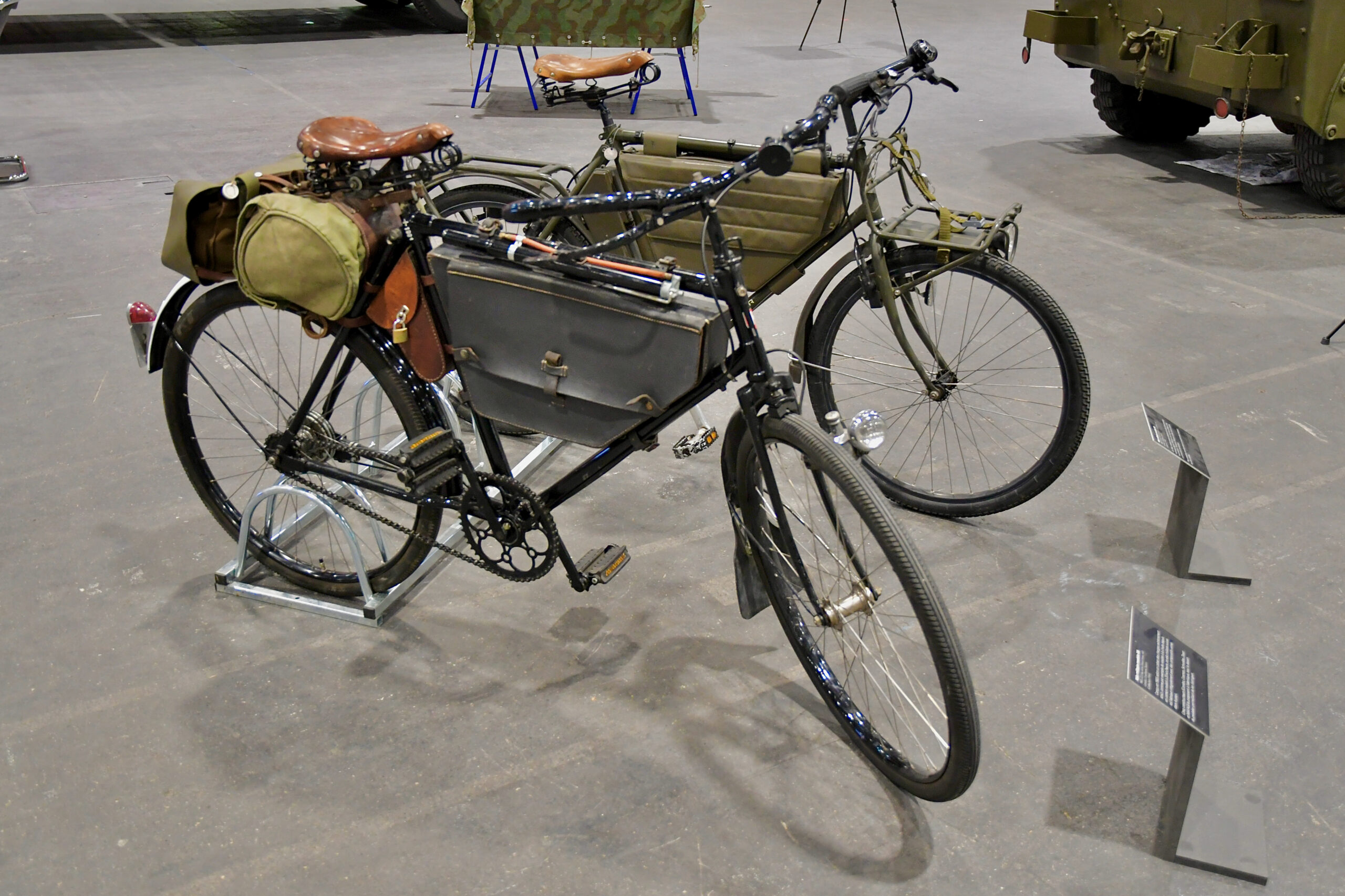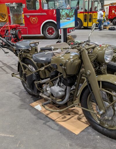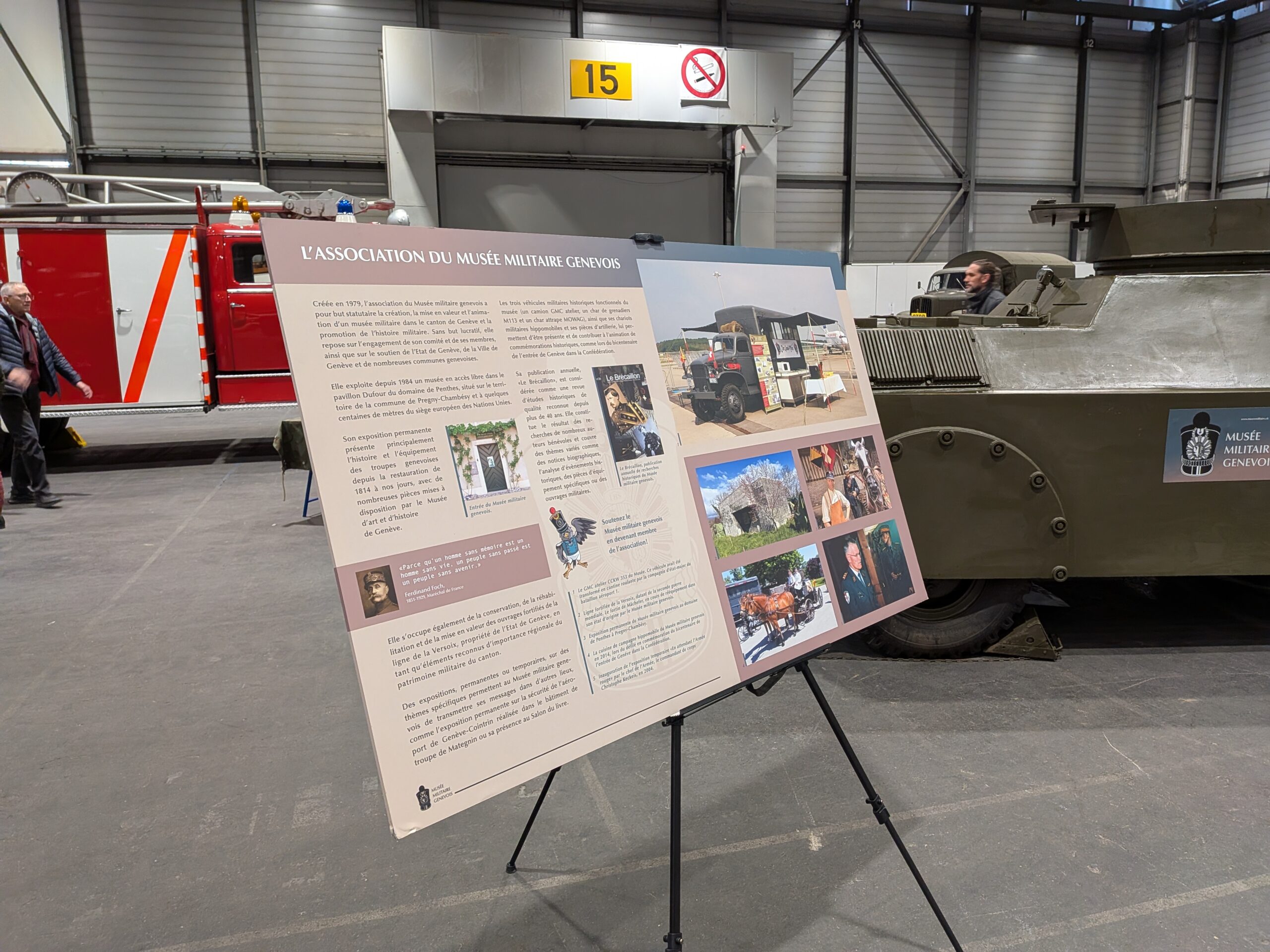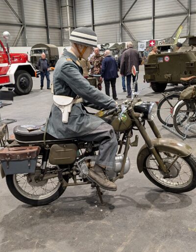 Le Musée y a présenté son char attrape, accompagné d’une moto Condor militaire (prêt du Musée de la Police), de deux machines (vélos militaires pour les non-initiés), modèles 05 et 93, et d’un side-car tractant une arquebuse anti-char (prêtés par des collectionneurs amis).